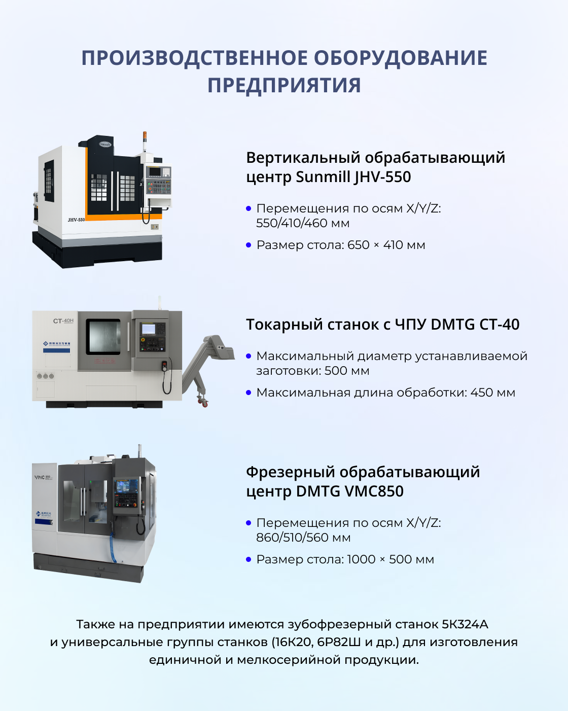 Специалисты компании помогают решать задачи, связанные с обработкой черных и цветных металлов, нержавеющей стали и конструкционных пластиков. Также предприятие изготавливает приводные звездочки, шестерни, цилиндрические колеса с прямыми и косыми зубьями, а также червячные колеса.